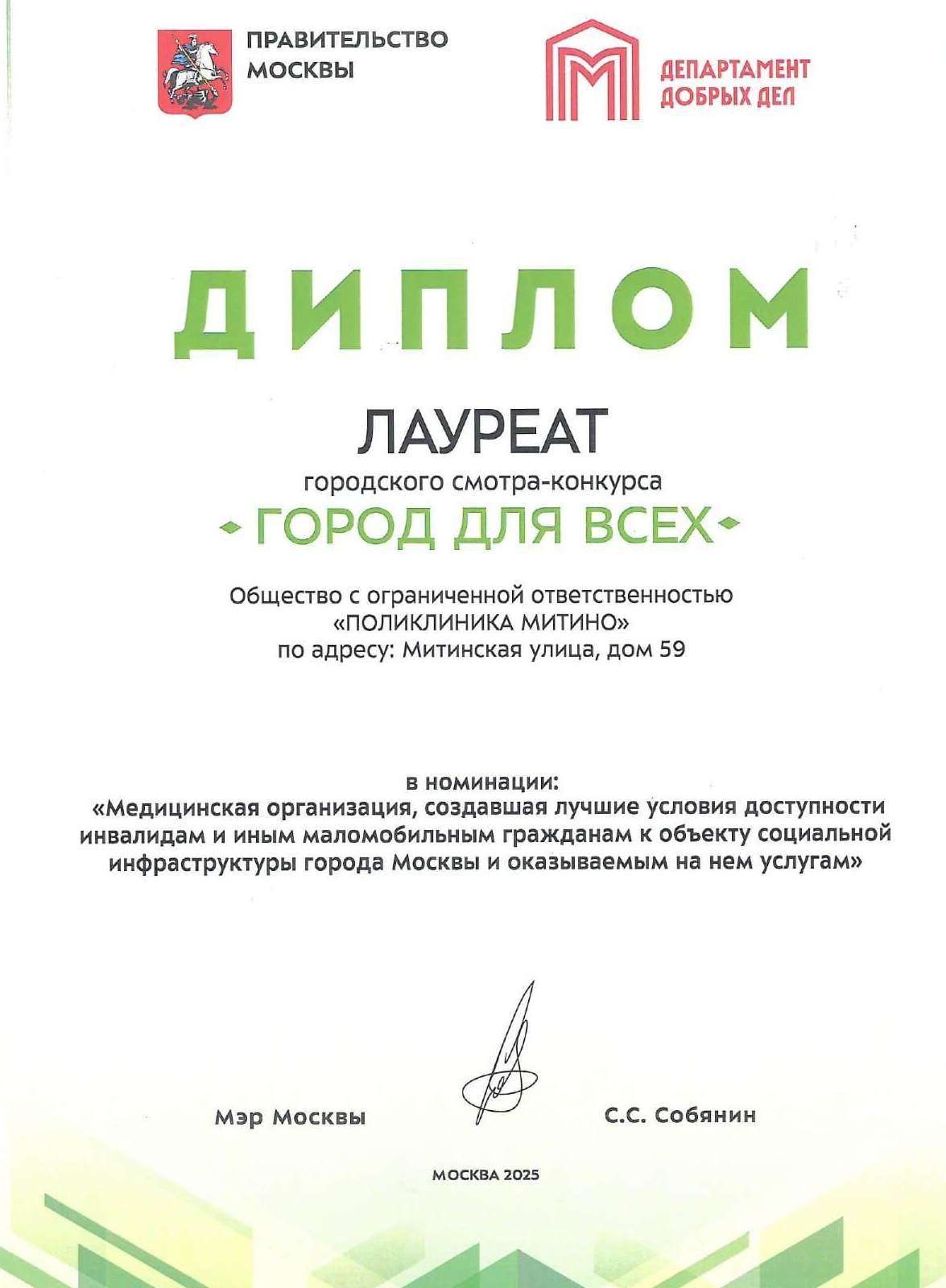 В 2025 году победителями конкурса стали более 40 организаций из разных районов столицы, выбранные в 14 номинациях. Мы гордимся тем, что вошли в их число, подтвердив высокий уровень комфорта и качества медицинского обслуживания в нашей клинике!