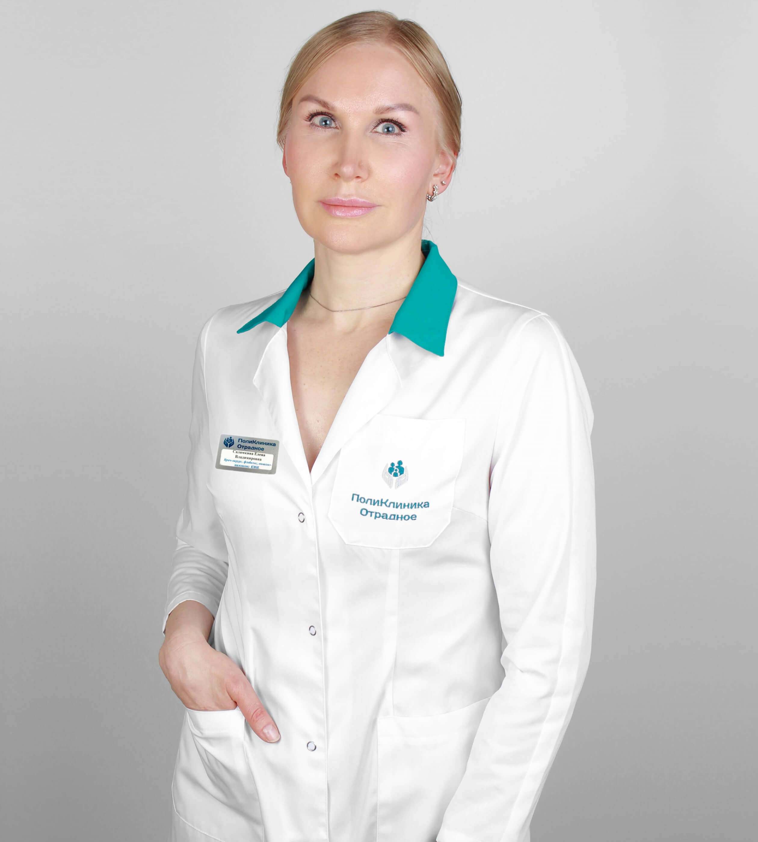 Благодарю доктора Салямкину Елену Владимировна за консультацию. Одна из немногих докторов, соответствующая квалификации именно врача хирурга, онколога, если хотите и дерматолога. На каждый вопрос пациента — незамедлительный ответ доктора. Сейчас это большая редкость! Складывается впечатление, что нет в медицине, того, чего не знала Елена Владимировна. Очень грамотный специалист!!! Таких докторов единицы! Внимательна, доброжелательна, пунктуальна. Желаю Вам здоровья, благополучия, успехов на медицинском поприще и не оставлять данное место работы в нашем микрорайоне Отрадное. Ещё раз большое спасибо!
